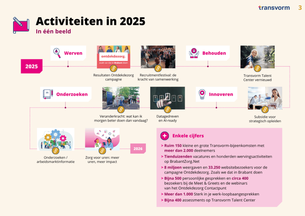 Transvorm is het regionaal samenwerkingsverband van werkgevers in zorg en welzijn in Noord-Brabant. We stimuleren onze bijna 300 aangesloten organisaties bij de regie over een wendbare toekomstbestendige arbeidsmarkt in de sector.